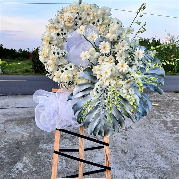 - Điểm nổi bật: Hoa tone trắng mang đến ý nghĩa chân thành và trang trọng nhất. Để quý khách có thể bày tỏ lòng thành kính, chia buồn sâu sắc đến với gia đình và lời động viên tinh thần trọn vẹn nhất.