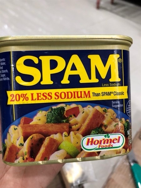 Thịt hộp Spam 25%less sodium Hormel food 340g Mỹ
